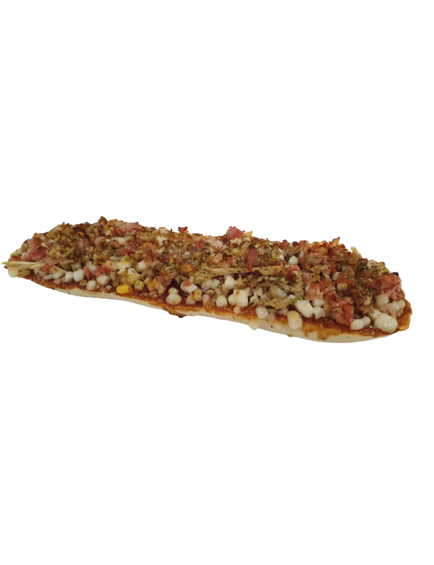 Medio bocadillo en formato de pizza.