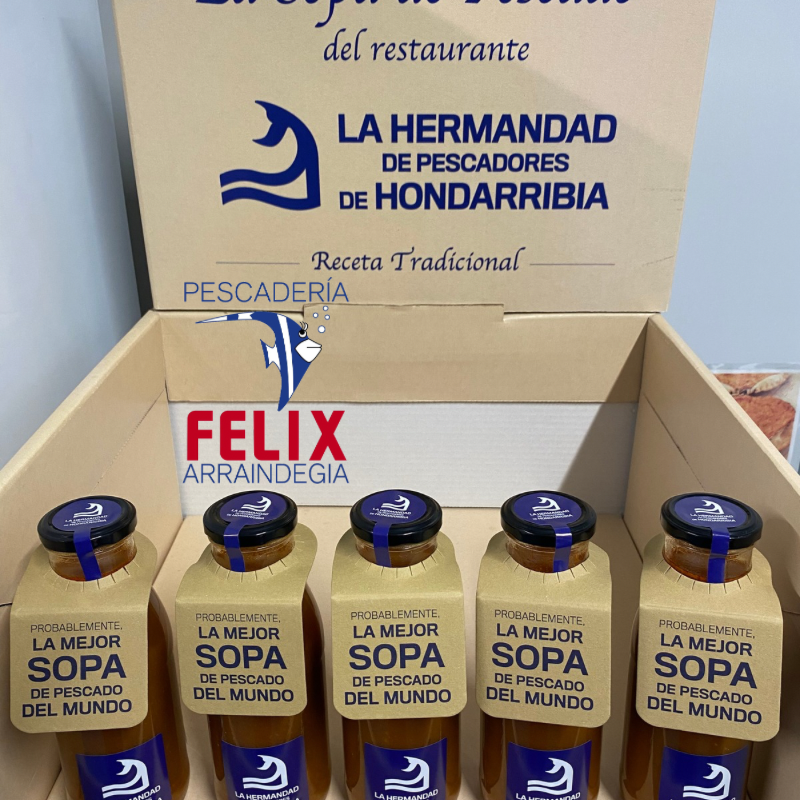 Este producto nace de la colaboración con el emblemático restaurante La Hermandad de Pescadores de Hondarribia, un referente gastronómico al que acuden personas de todo el mundo y visitantes llegados incluso desde Japón para disfrutar de su cocina.