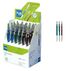 Pulsador y clip metálicos. Puntera metálica retráctil. Surtido Tres colores: rojo, azul y verde. Mina: 2.0 mm. Con afilalápiz en el pulsador.