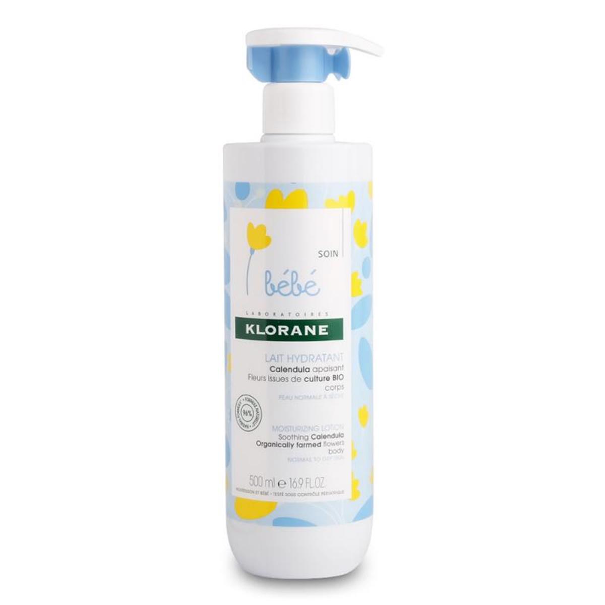 La leche hidratante natural* a la Caléndula de Klorane Bebé hidrata, calma y protege la piel de la sequedad cada día.