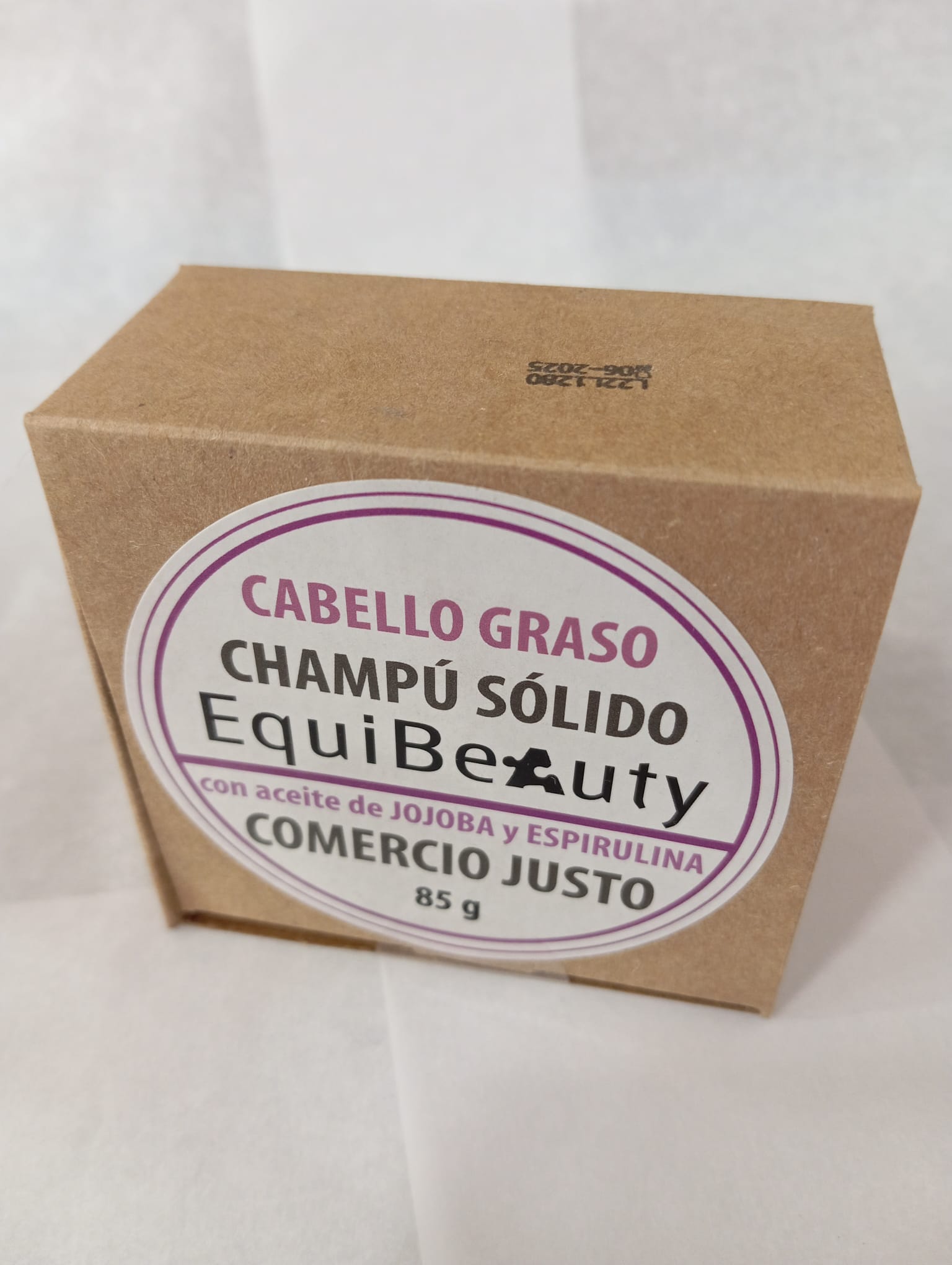 Champú sólido para cabello graso con aceite de jojoba ecológico y de Comercio Justo y espirulina. Sin sulfatos. En jabonera de aluminio. Elaborado con tensoactivo derivado del aceite de coco y jojoba. El aceite de jojoba ayuda a regular la secreción de sebo del cuero cabelludo, regulando el exceso de grasa y dejando un cabello suelto limpio e hidratado. La espirulina fortalece y repara el cabello, contribuyendo a combatir su caída