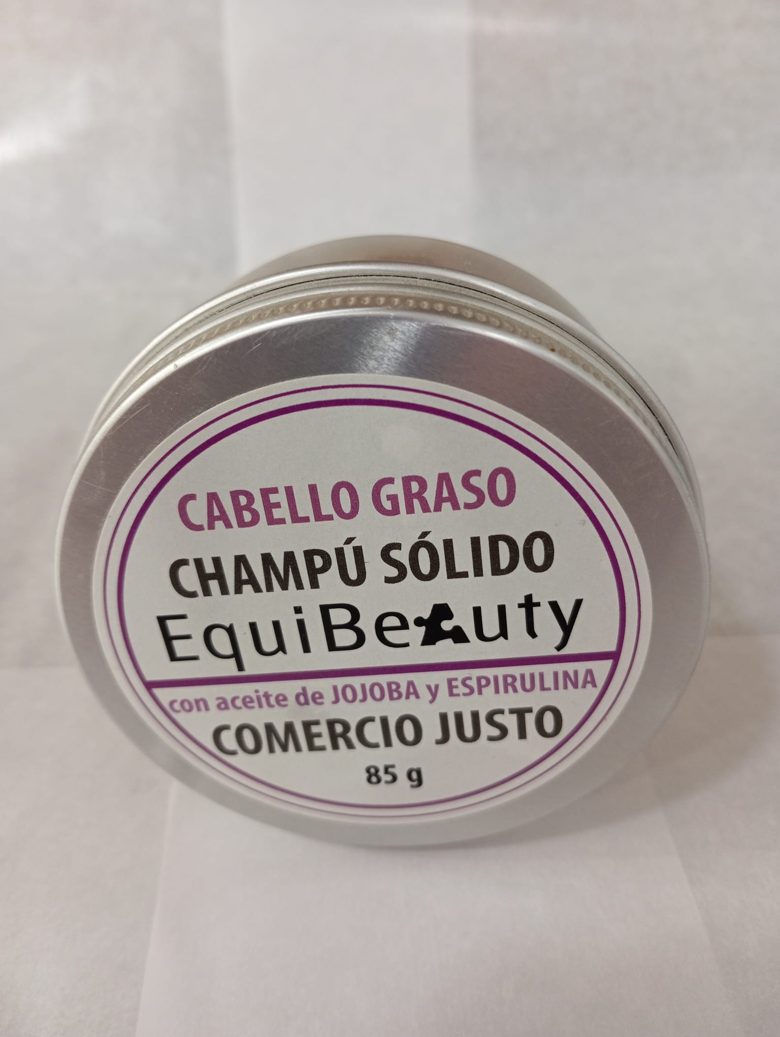 Champú sólido para cabello graso con aceite de jojoba ecológico y de Comercio Justo y espirulina. Sin sulfatos. En jabonera de aluminio. Elaborado con tensoactivo derivado del aceite de coco y jojoba. El aceite de jojoba ayuda a regular la secreción de sebo del cuero cabelludo, regulando el exceso de grasa y dejando un cabello suelto limpio e hidratado. La espirulina fortalece y repara el cabello, contribuyendo a combatir su caída