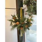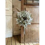 Centro con flores secas en tonos blancos, cremas y marrones.