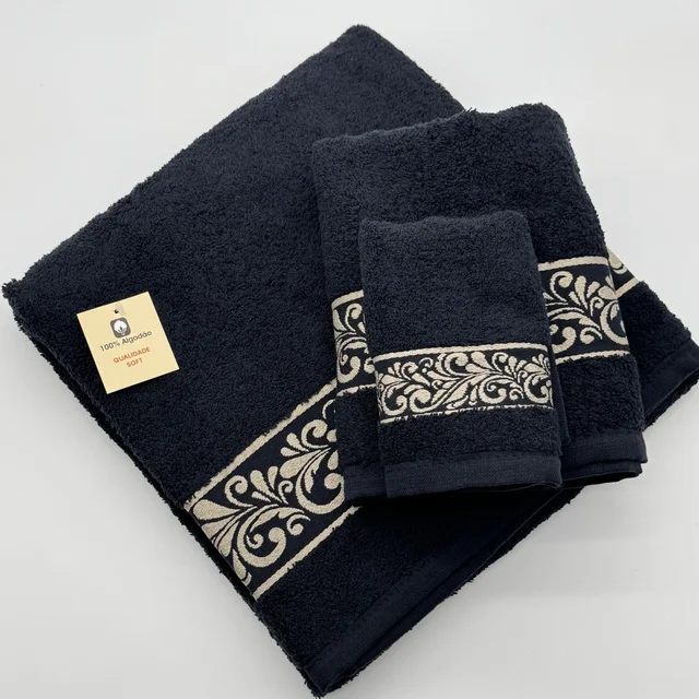 Juego de toallas 3 piezas - Modelo Laurel negro