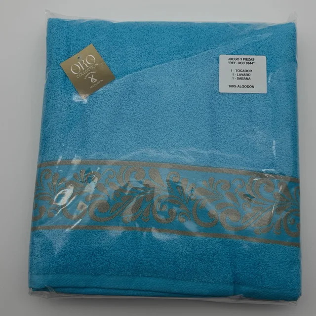 Juego de toallas 3 piezas - Modelo Laurel azul