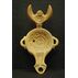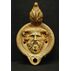 Lucerna de disco con asa plástica en forma de hoja. Disco decorado con una cabeza de fauno. Medidas: 17 x 11 x 6,5 cm