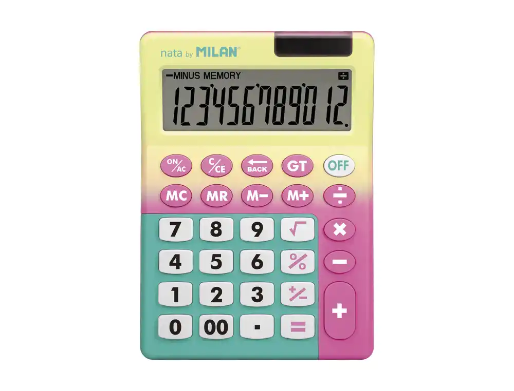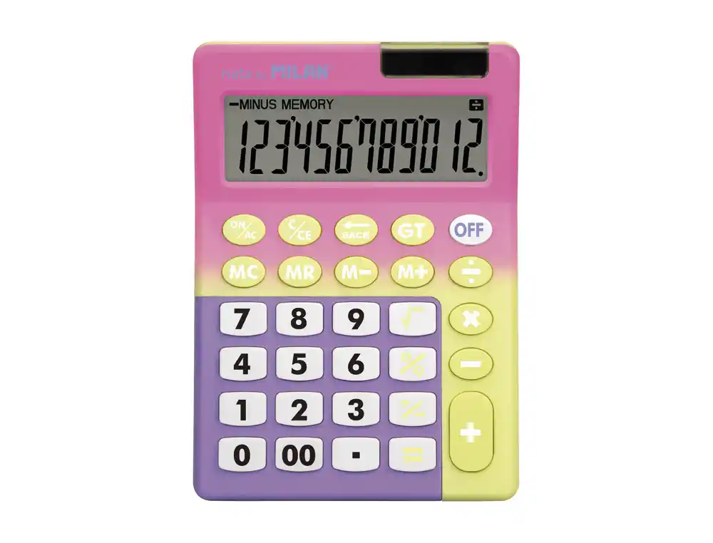 La Calculadora de Sobremesa MILAN Sunset de 12 Dígitos es una herramienta indispensable para quienes buscan precisión y estilo en sus cálculos diarios. Con su diseño original y compacto, creada por el departamento de I+D de MILAN, se adapta perfectamente a cualquier escritorio, ya sea en la oficina o en el hogar.