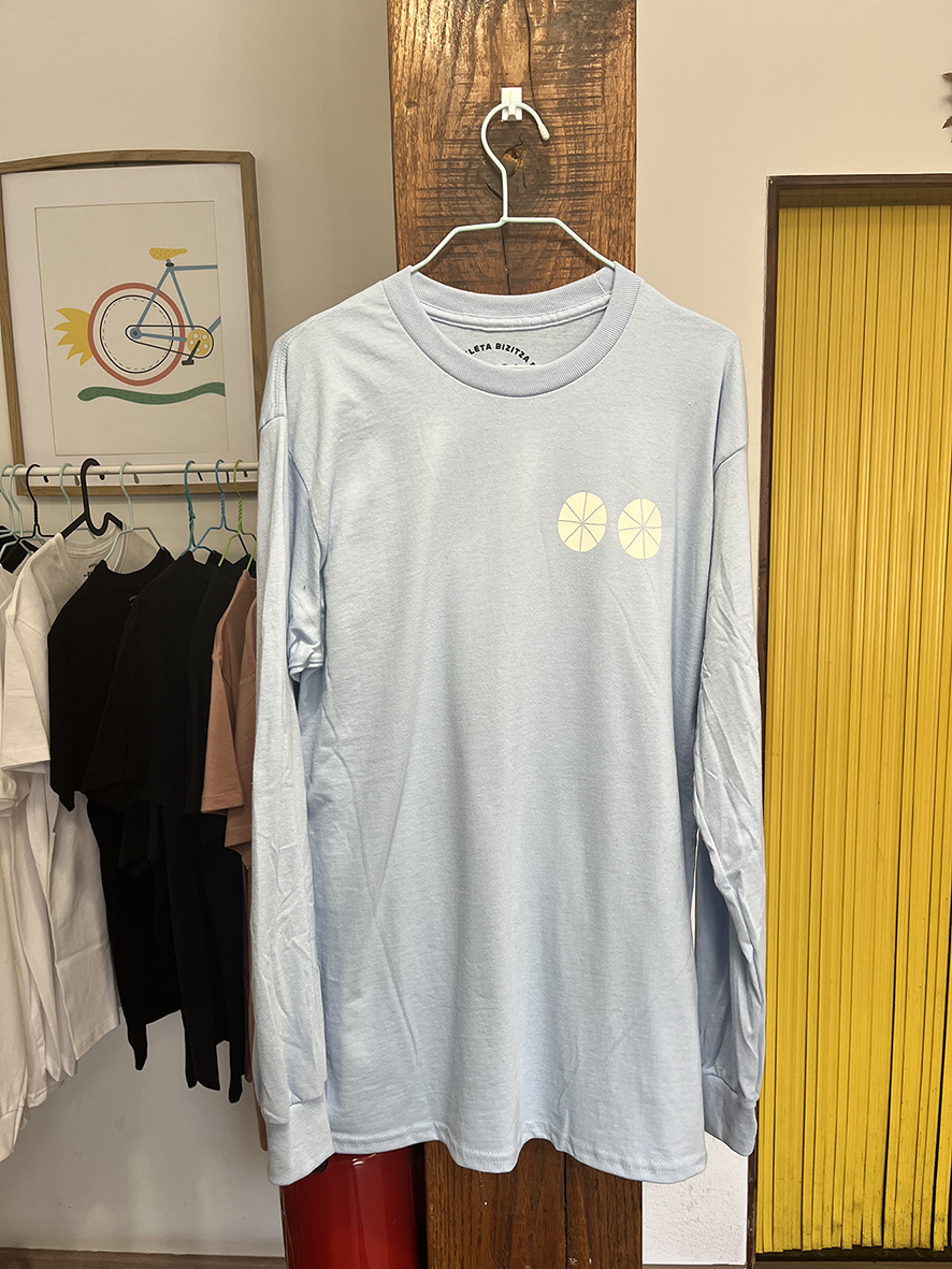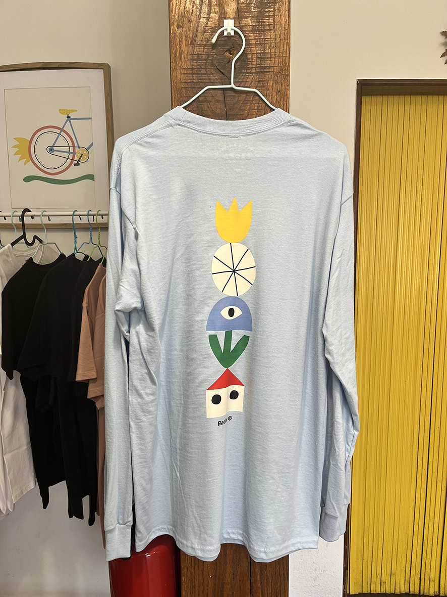 Camiseta azul Badoa con un diseño limpio por >span class="BZ_Pyq_fadeIn">y una ilustración protagonista en la espalda. En el pecho, en el lado izquierdo, lleva un pequeño motivo que aporta un detalle sutil, mientras que la ilustración trasera le da personalidad y hace que la prenda llame la atención.