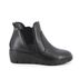 El diseño de este botín en piel negro está realizado en cuña media que ofrece un gran descanso. La cremallera interna y el elástico exterior favorecen la...