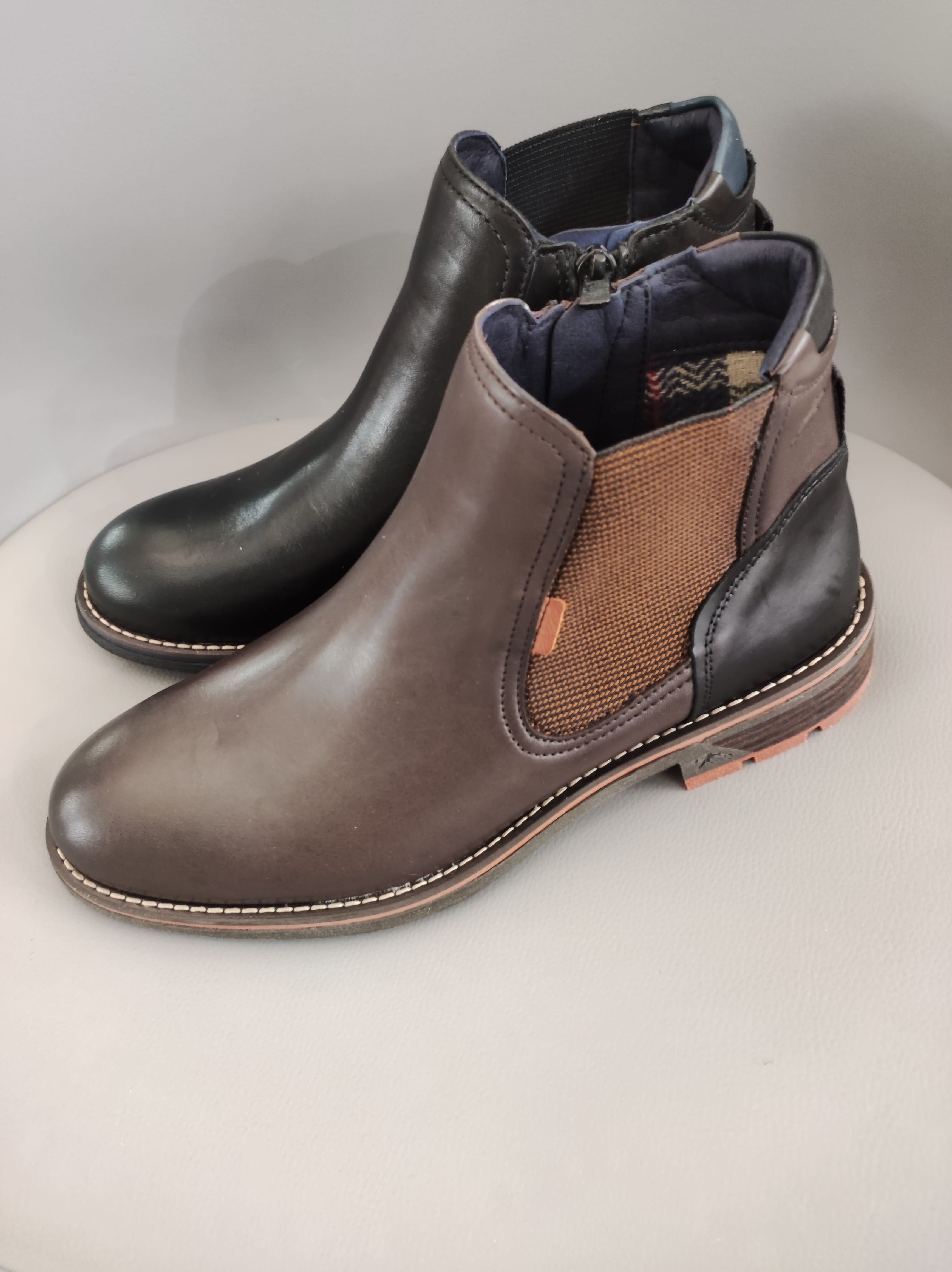 Botín Chelsy de caballero con cremallera en un costado, fabricado en piel de primerísima calidad. Marca Fluchos. Plantilla extraíble de gel y piso de goma antideslizante.