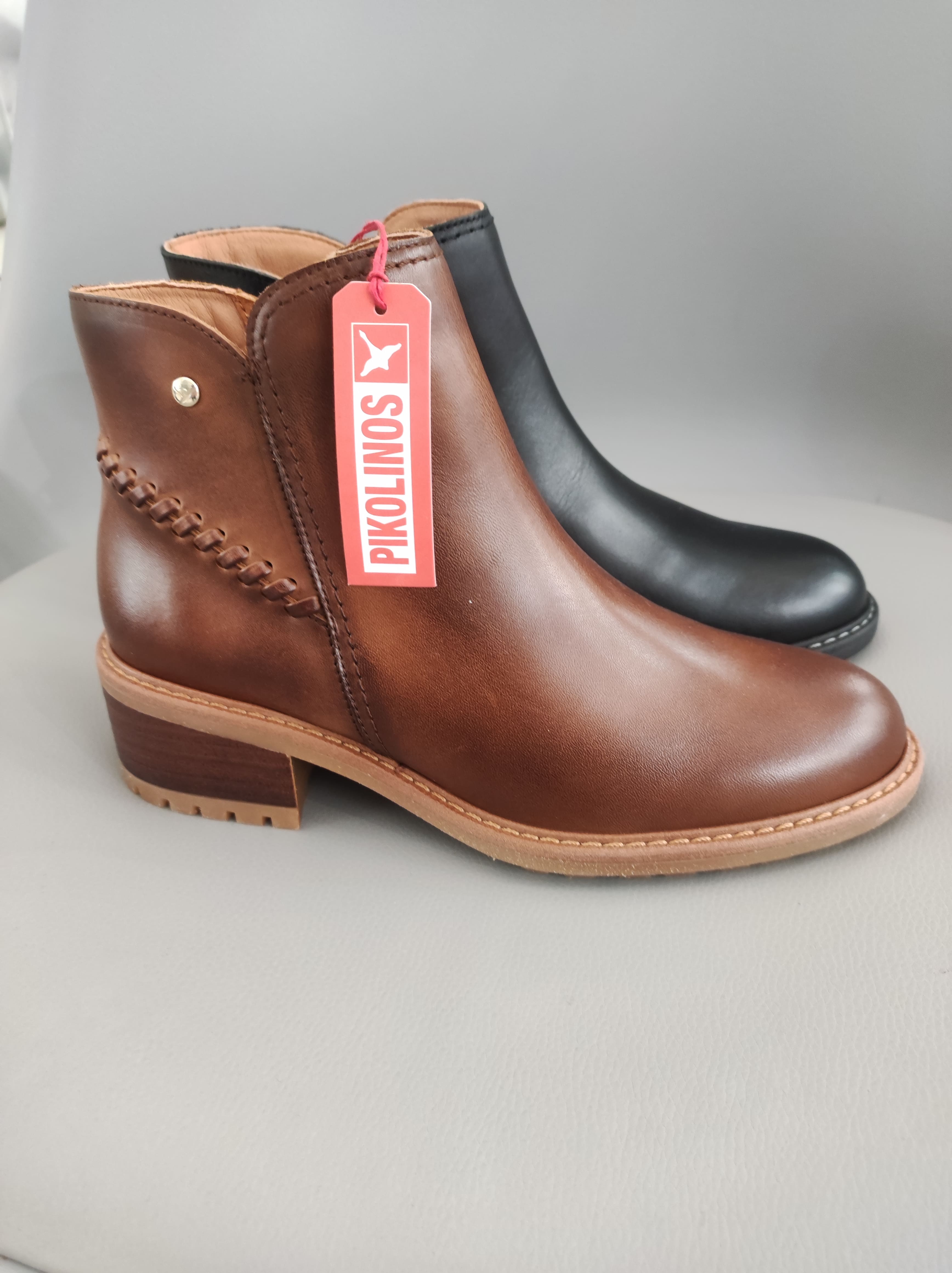 Botín de vestir de señora, fabricado en piel de la marca Pikolinos. Tacón de 2'5 centímetros, piso antideslizante de goma. Cremallera en un lateral.