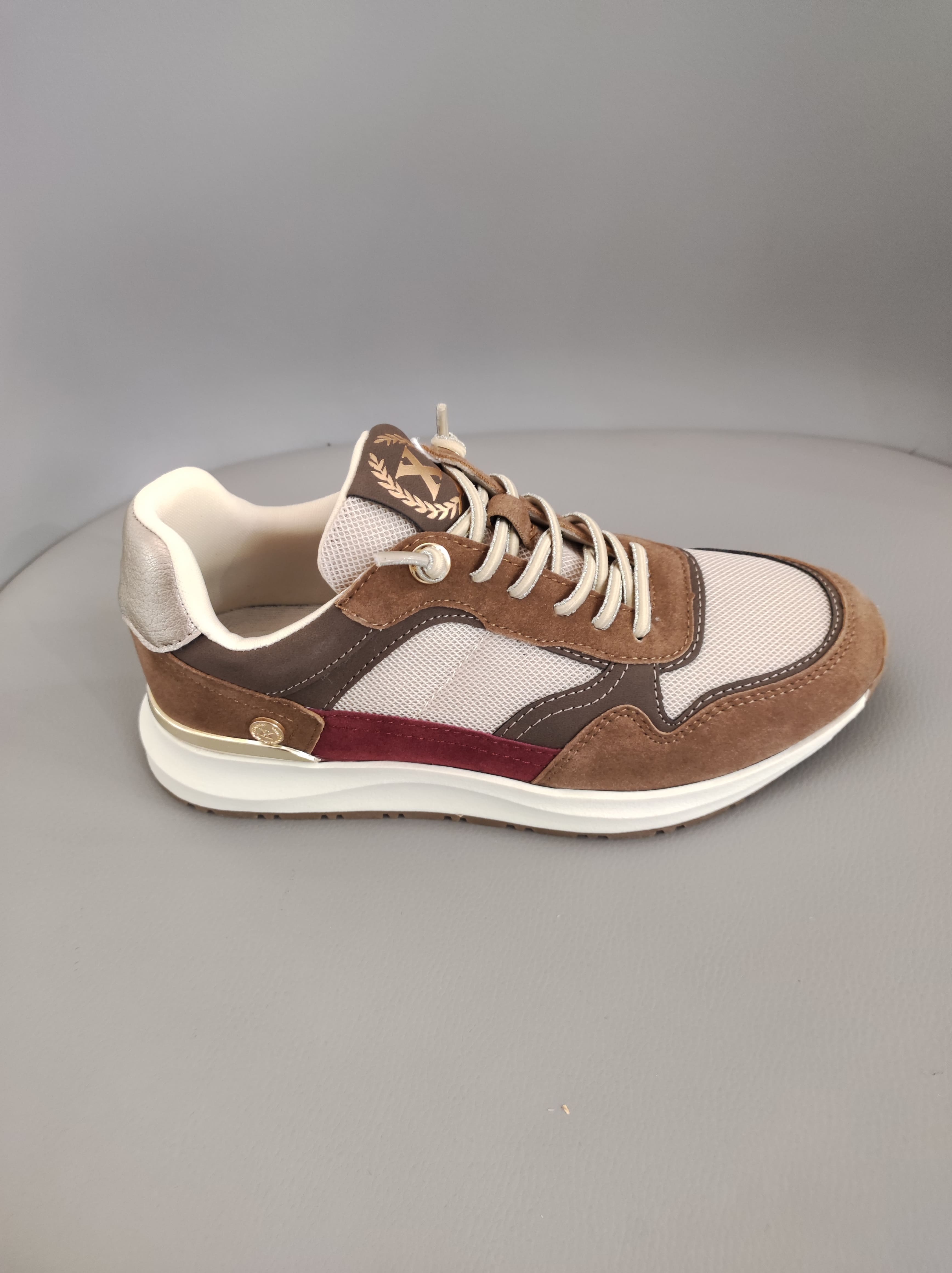 Deportiva en textil y antelina de la marca XTI con cordones elásticos en el empeine y plantilla extraíble memory foam.