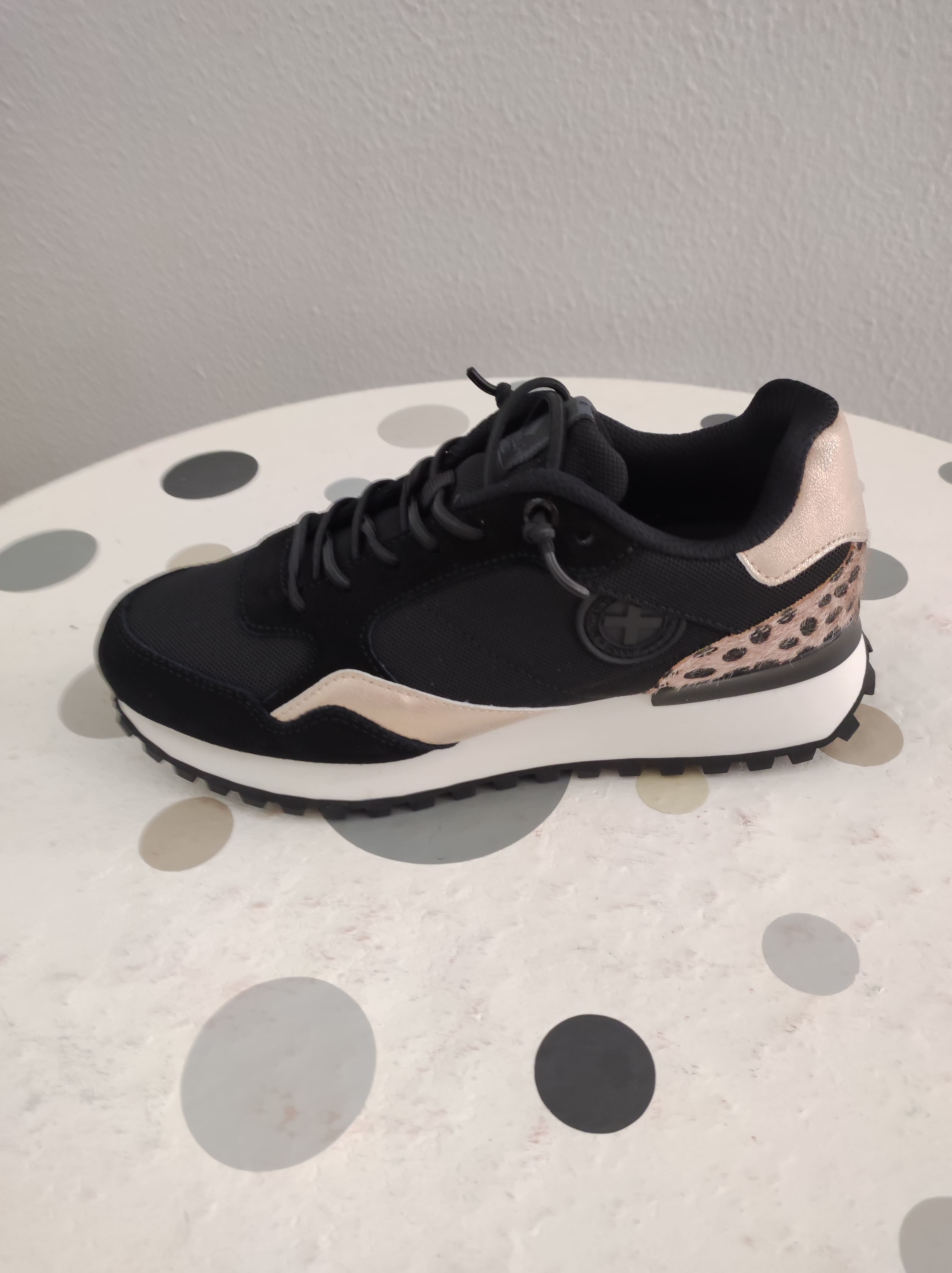 Deportiva de antelina con cordones elásticos, de la marca XTI. Plantilla extraíble de memory foam.