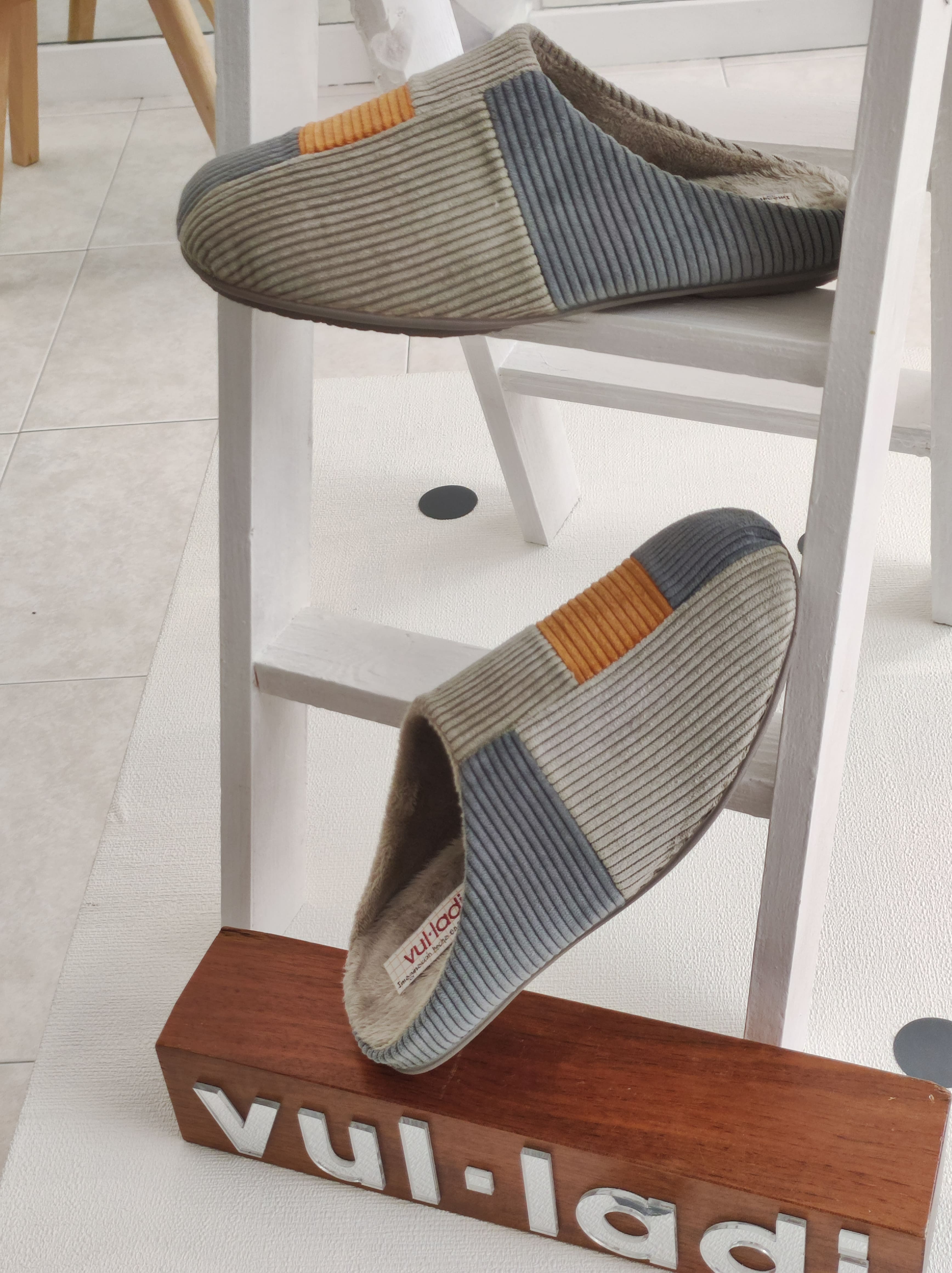 Zapatilla de casa abierta de talón. Piso de goma antideslizante.