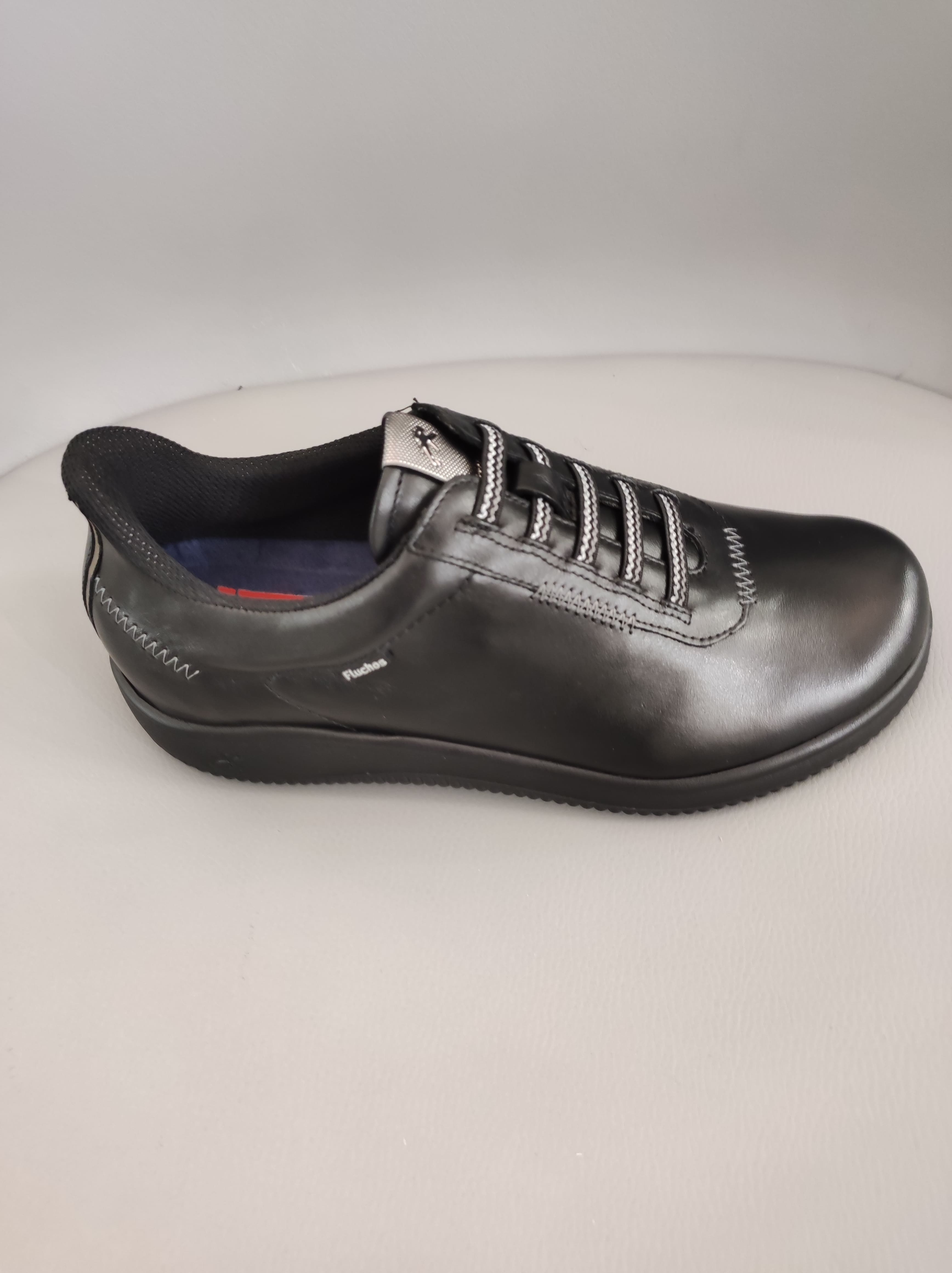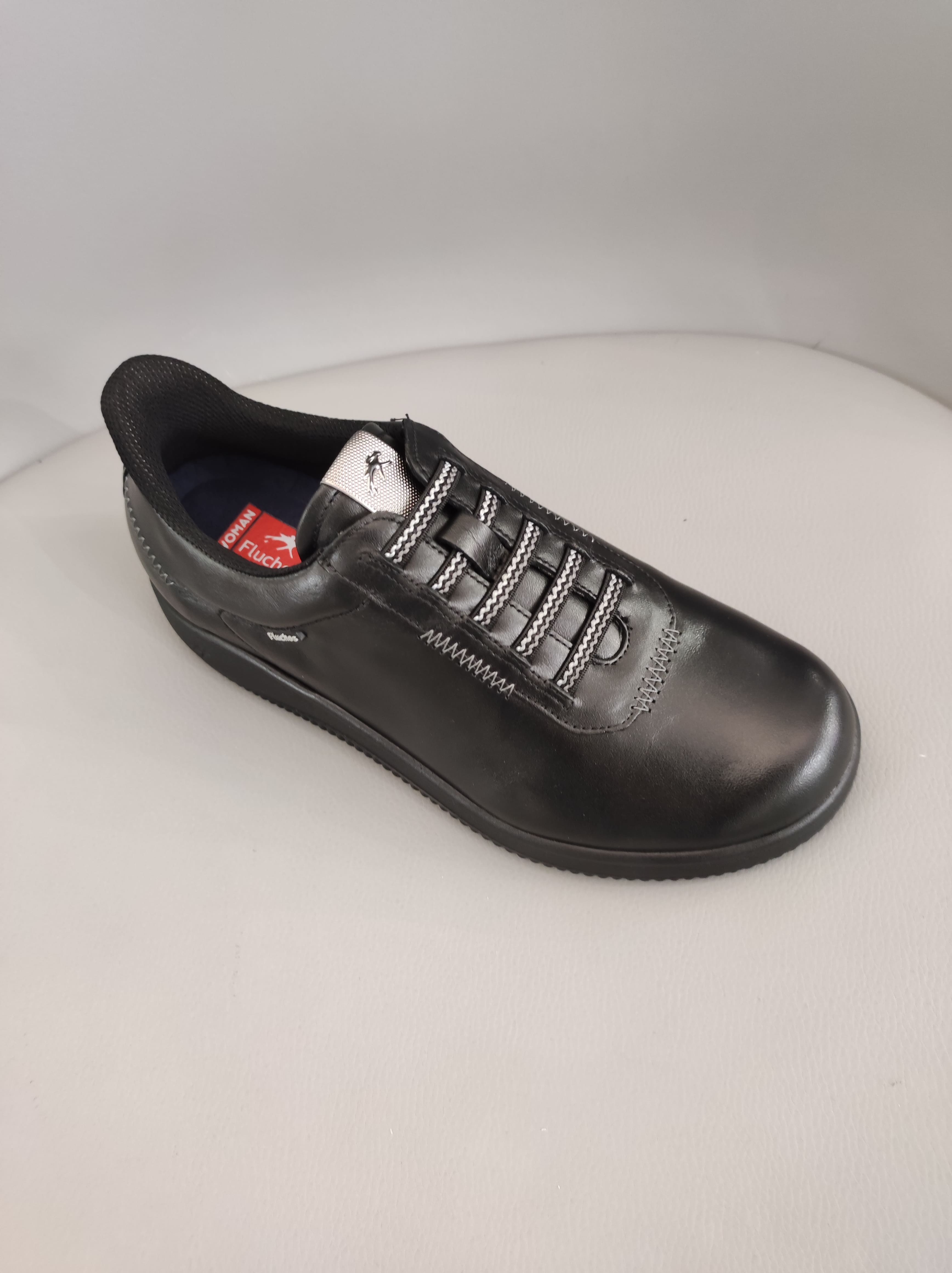 Zapato de piel de señora de la marca Fluchos. Con el sistema slim para poder calzarlo sin tener que agacharse. Plantilla extraíble de gel y piso ultraligero.