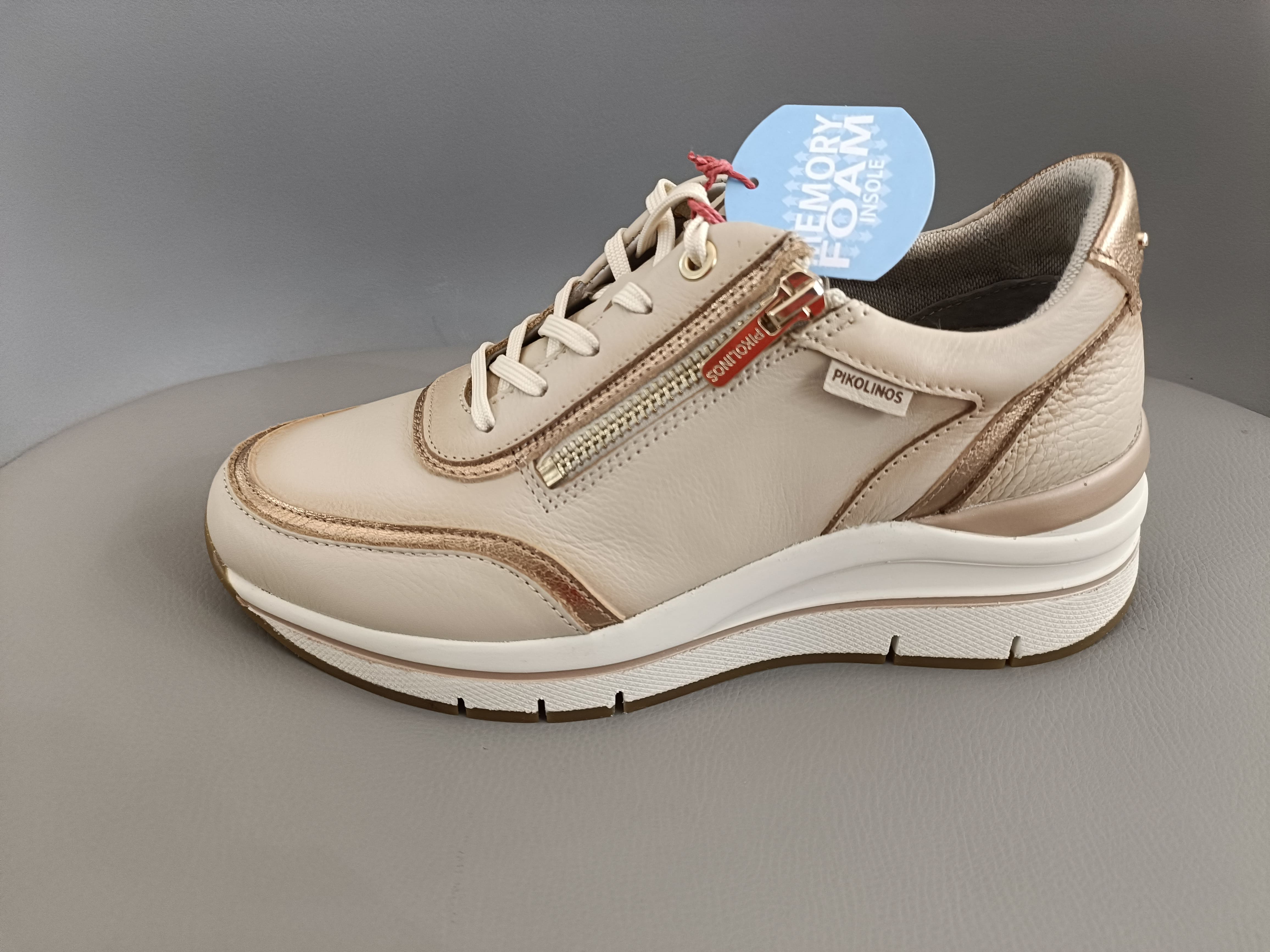 Zapato sport de señora de la marca Pikolinos. Con cuña de 3'5 centímetros. Ajuste con cordones y cremallera. Plantilla extraíble de gel.