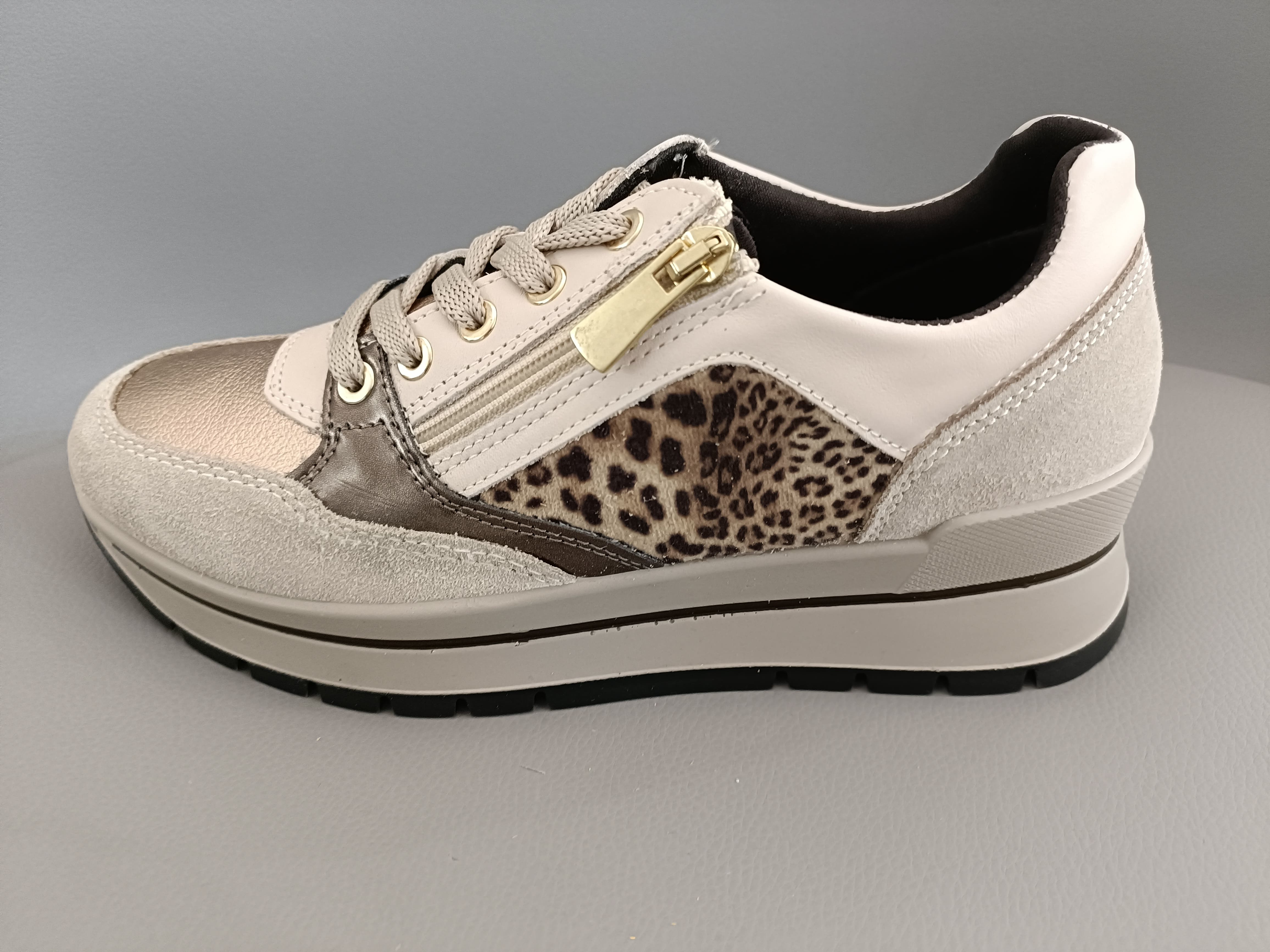 Zapato de piel de señora de la marca italiana Igi&Co. Con cordones y cremallera, plantilla extraíble de memory foam. Piso antideslizante.