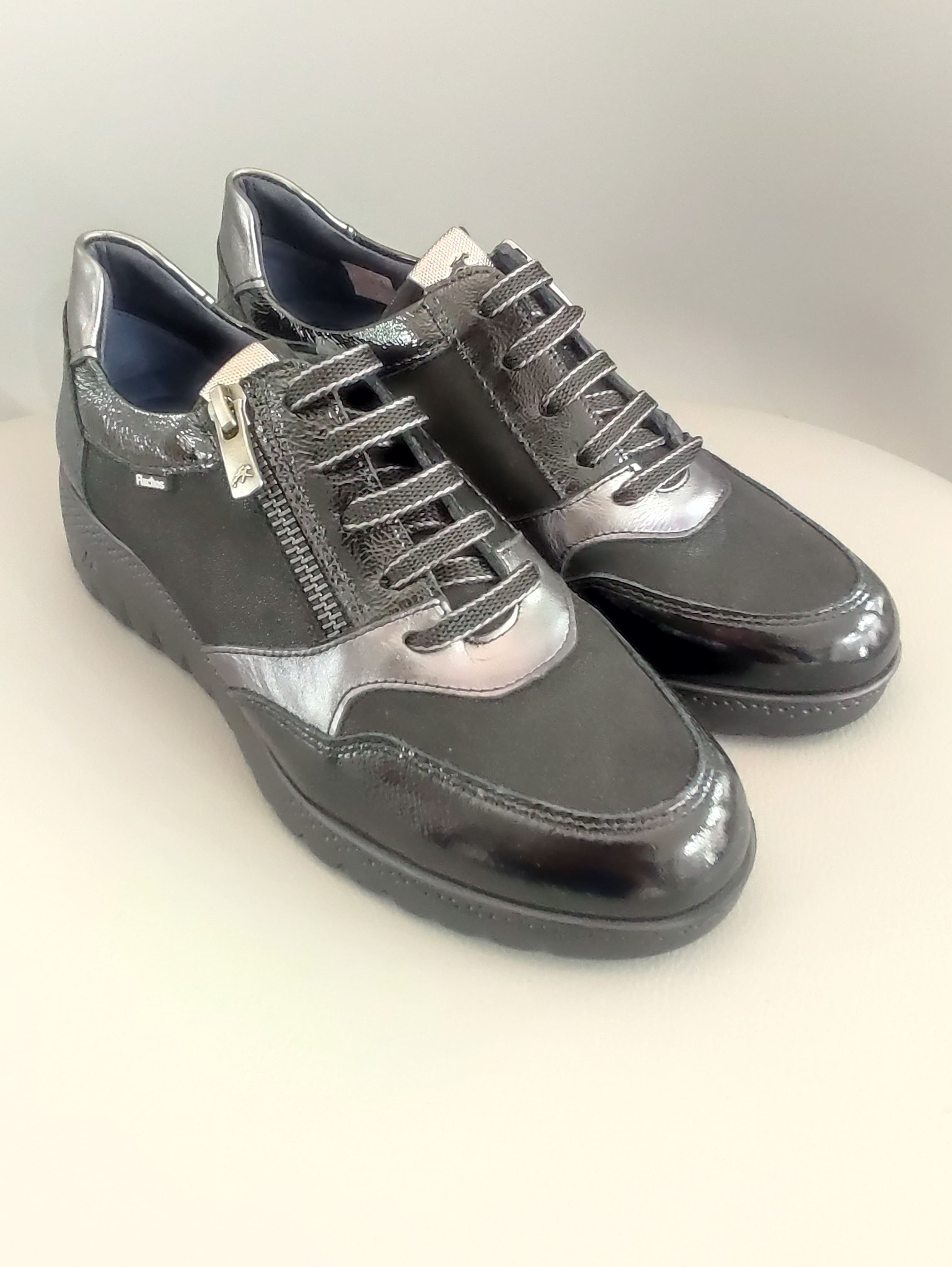 Bloucher para señora , con cuña de 4 ctmos. Cordón y cremallera, micropeso y gran flexibilidad. Fabricado íntegramente en cuero por Fluchos.
