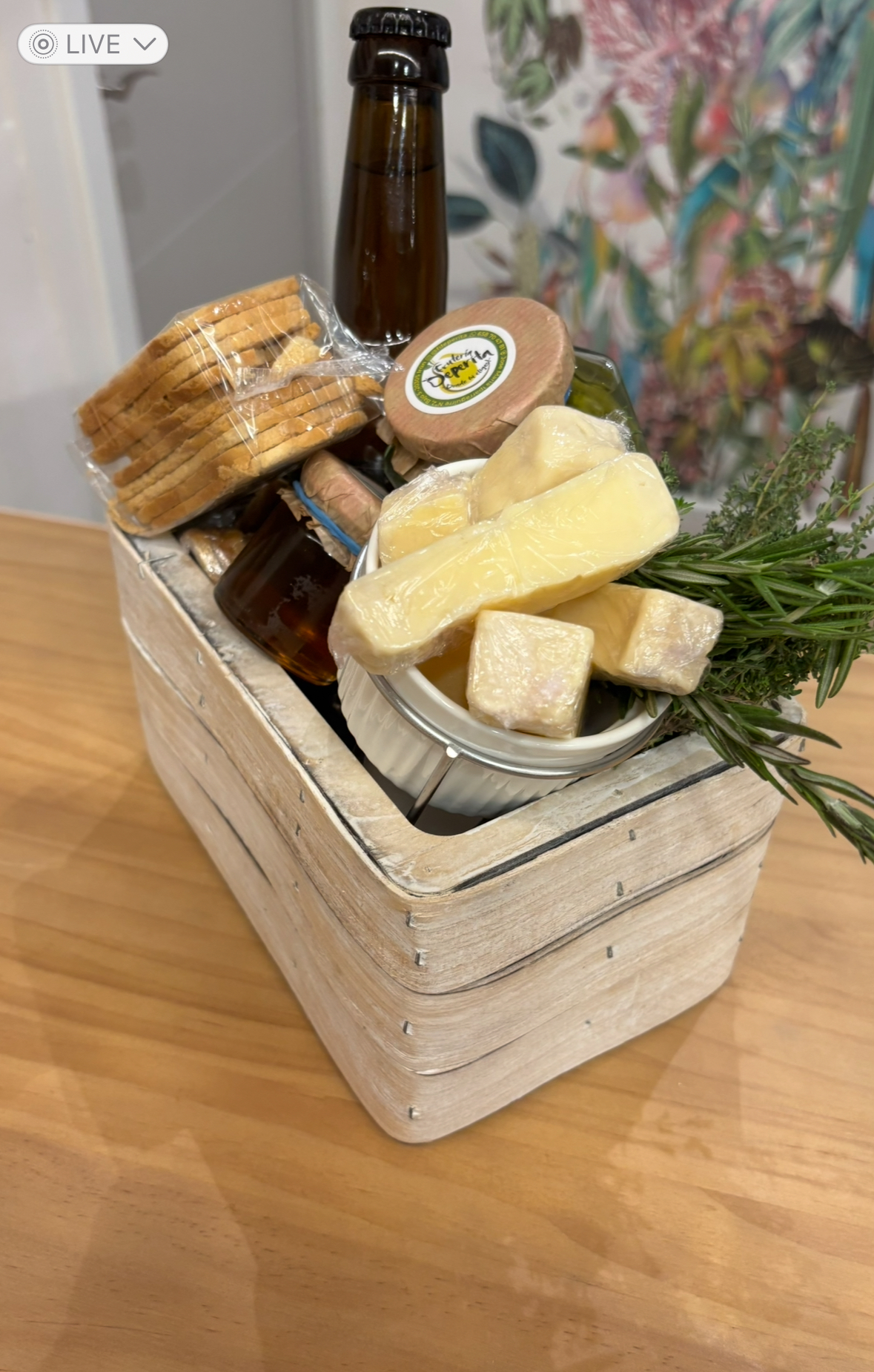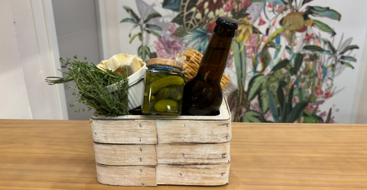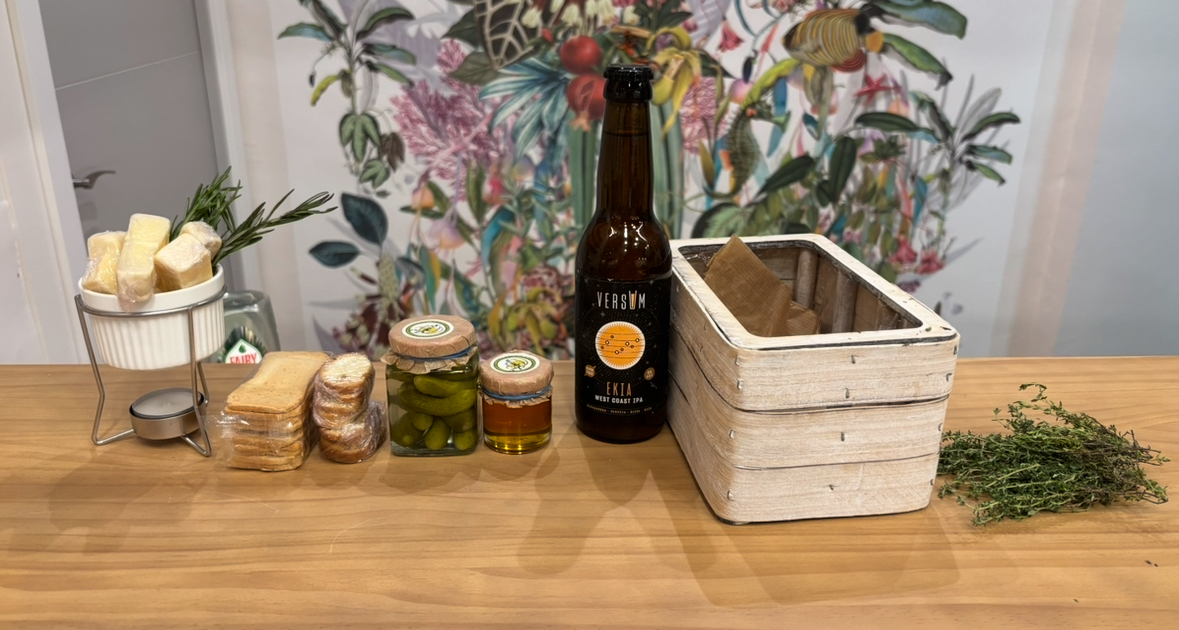 Detalle para compartir con productos frescos y cercanos . Si prefieres vino nos lo indicas en observaciones y lo cambiamos .