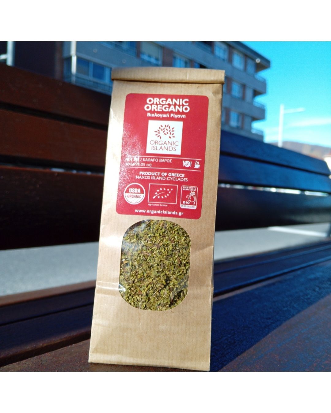 El Orégano Bio de Naxos 30g – Organic Islands es una hierba aromática ecológica cultivada en la isla griega de Naxos, una de las regiones con mayor tradición en producción de plantas aromáticas del Mediterráneo. Crece de forma natural bajo el sol intenso y el aire marino del Egeo, lo que le aporta un aroma potente, fresco y profundamente mediterráneo.