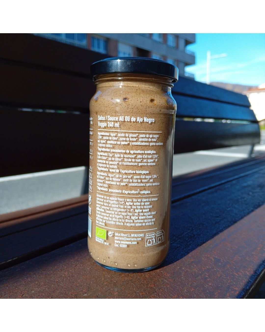 La Salsa Alioli de Ajo Negro Veggie Bio 240g Sesmans Organics es una salsa ecológica y vegana de alto nivel gastronómico, elaborada con ajo negro, conocido por su sabor más suave, dulce y profundo que el ajo tradicional. Ideal para quienes buscan un alioli diferente, gourmet y 100% vegetal, sin ingredientes de origen animal.
